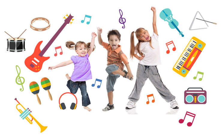 La musica para niños y jóvenes identificada con una tira de color.