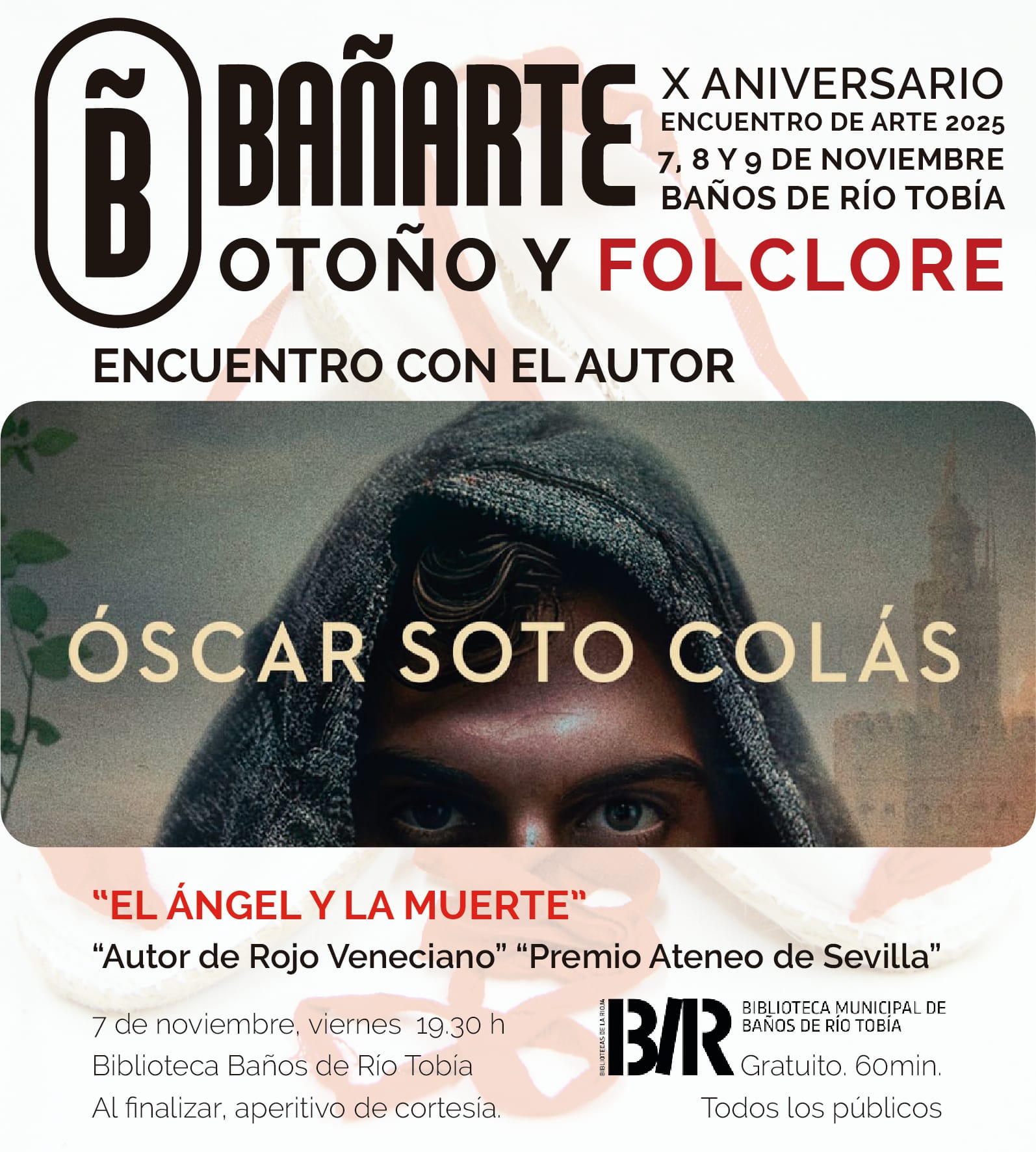 El próximo viernes día 7 de noviembre, dentro del Encuentro de Arte Bañarte Otoño, nos visita Oscar Soto Colás, autor de la novela "El ángel y la muerte" ganadora de del LVII Premio de Novela Ateneo de Sevilla.